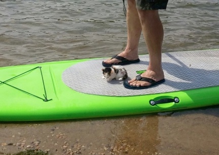| stand up paddle trick board boarding kitty cat feline kitten training teach tricks trick agilitybeach kitty cat kitten sup lake |