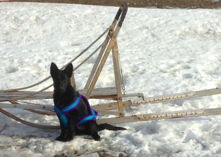 | black german shepherd dog puppy sled dog harness harnessed |